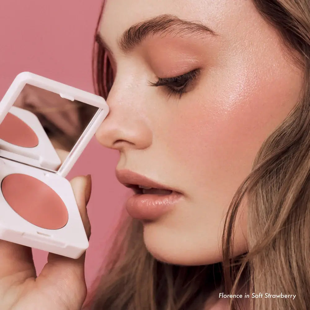 Using a brush, sponge or your fingertips, blend into cheeks or lips for a flush of color.